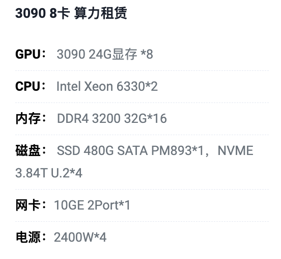 廊坊3090八卡算力租用价格